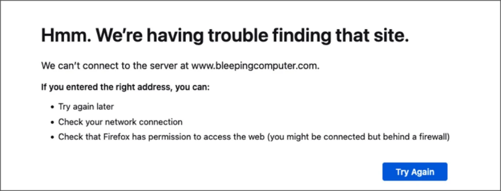 รูปที่ 1: แสดงตัวอย่างหน้าเว็บไซต์ที่ Error connecting จากเว็บไซต์ BleepingComputer