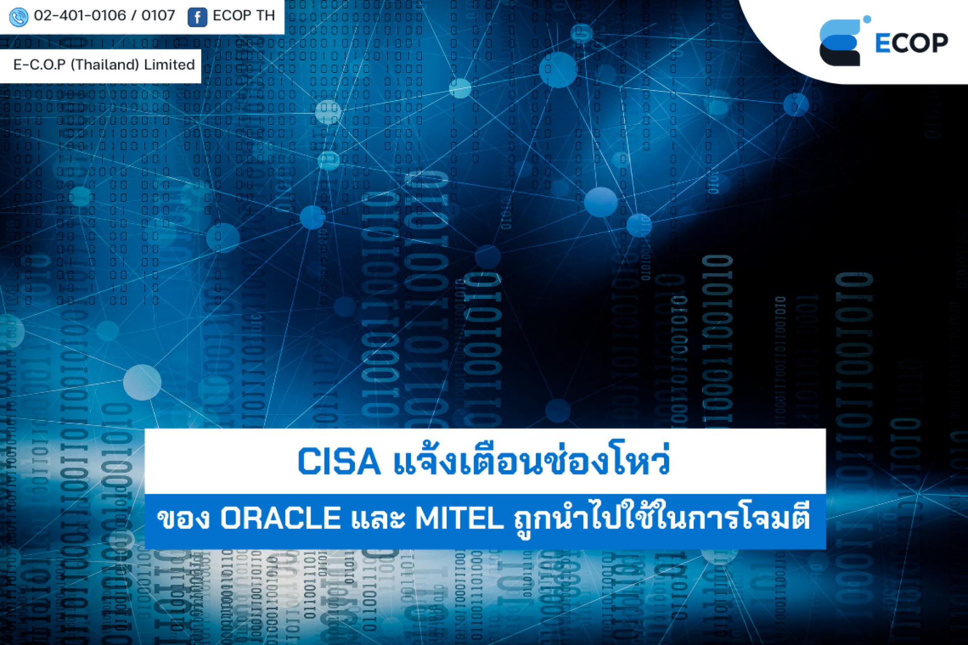 CISA แจ้งเตือนช่องโหว่ของ Oracle และ Mitel ถูกนำไปใช้ในการโจมตี