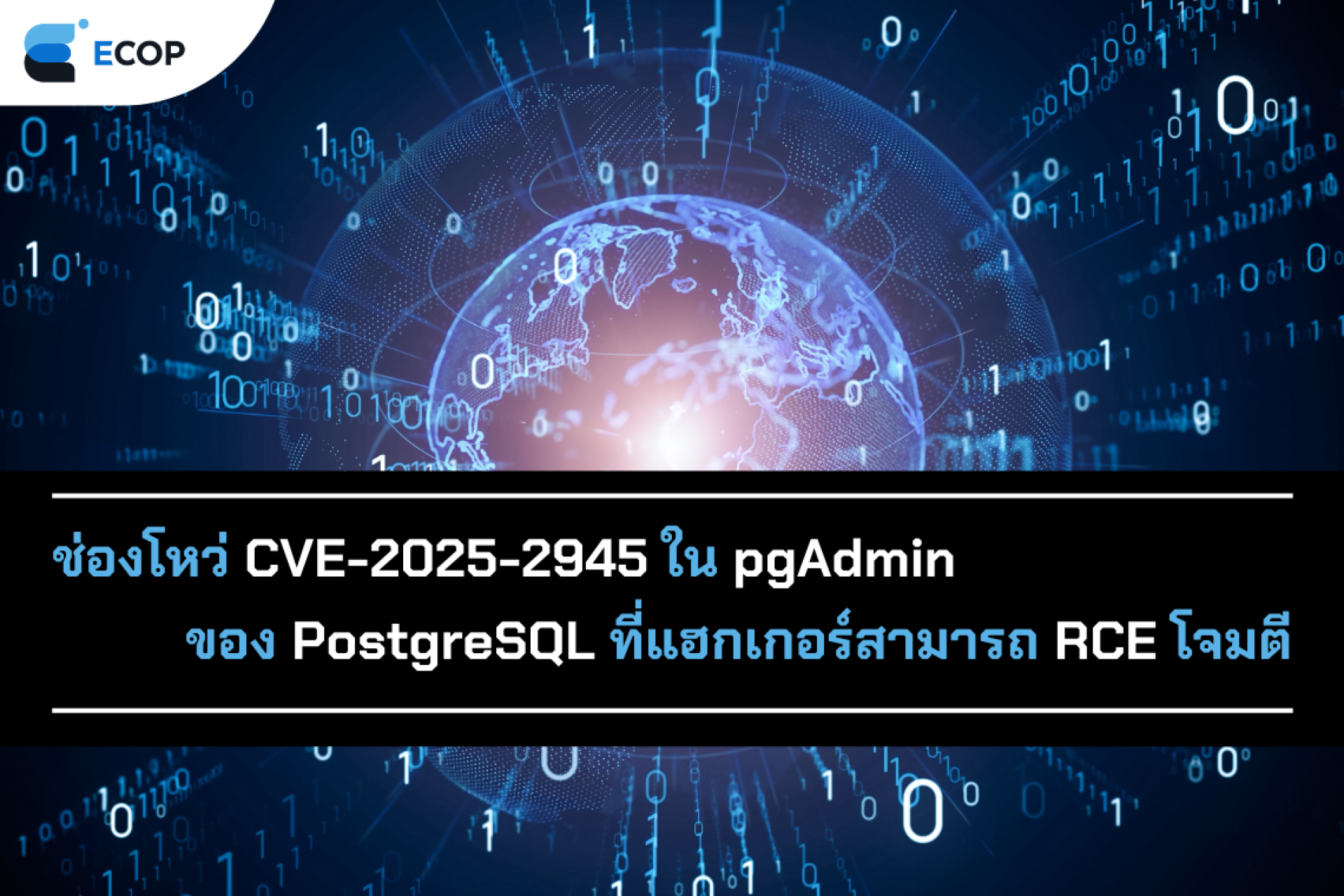 พบช่องโหว่ CVE-2025-2945 ในโปรแกรม pgAdmin ซึ่งเป็นเครื่องมือ Open-source สำหรับจัดการและพัฒนาฐานข้อมูล PostgreSQL ในรูปแบบของ GUI ที่ง่ายต่อการใช้งานและนิยมใช้กันอย่างแพร่หลาย ช่องโหว่นี้ทำให้แฮกเกอร์ที่ผ่าน Authentication สามารถโจมตีด้วยวิธี Remote Code Execution (RCE) ซึ่งจะนำไปสู่การเข้าถึง แก้ไข หรือขโมยข้อมูลสำคัญจากฐานข้อมูล รวมทั้งอาจนำไปสู่การโจมตีแบบ Lateral Movement ไปยังระบบอื่นๆ ภายในเครือข่ายได้อีกด้วย ณ ปัจจุบันมีการออกแพตช์แก้ไขช่องโหว่นี้เป็นที่เรียบร้อย